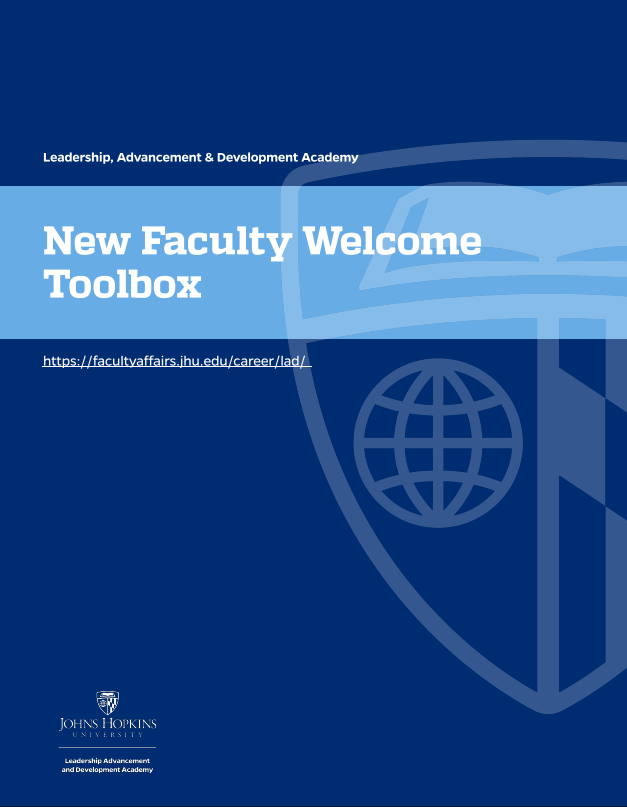 Here you will find resources to complement the orientation information available from your home division. This New Faculty Welcome Toolbox (pdf below) addresses various questions that may arise as you begin your career at Johns Hopkins University. This guide will focus primarily on activities and resources at the University level and (when possible) refer you to resources at your home Division.